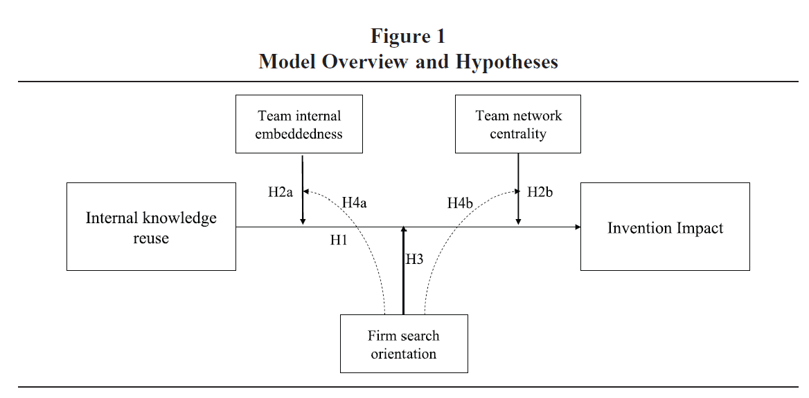 Inventors are triply embedded. They are embedded in a network of knowledge components that they can reuse in future inventions. They are embedded in an inventor network, where internal embeddedness (the strength of relationships between focal inventors and their colleagues upon whose knowledge the team builds) and network centrality influence access to information. Finally, they are embedded in the firm, with its specific routines that favor external or internal knowledge search, what we call search orientation. Using a sample of 39,785 semiconductor patents, we study the pattern of knowledge reuse, or the recombination of technologically similar components, on invention impact. We propose that reuse of internal knowledge affects invention impact in a concave manner and posit that internal embeddedness steepens this relationship while network centrality leads to an inflection point shift. We examine whether these effects differ for subsamples of firms with inward- or outward-looking search orientation. We find that inward-looking firms’ optimal pattern of internal knowledge reuse does not differ markedly from that of outward-looking firms. We find that inward-looking firms are more susceptible to internal embeddedness and that centrality in the collaborative network flattens rather than shifts the relationship between reuse and impact. These findings elevate the theoretical discourse of embeddedness from the effects of network positions on innovation outcomes to similar network positions having asymmetric effects that vary with the firm’s search orientation. Our results contribute to an emergent area in innovation research on how inventor networks shape the inventive process and its outcomes.
